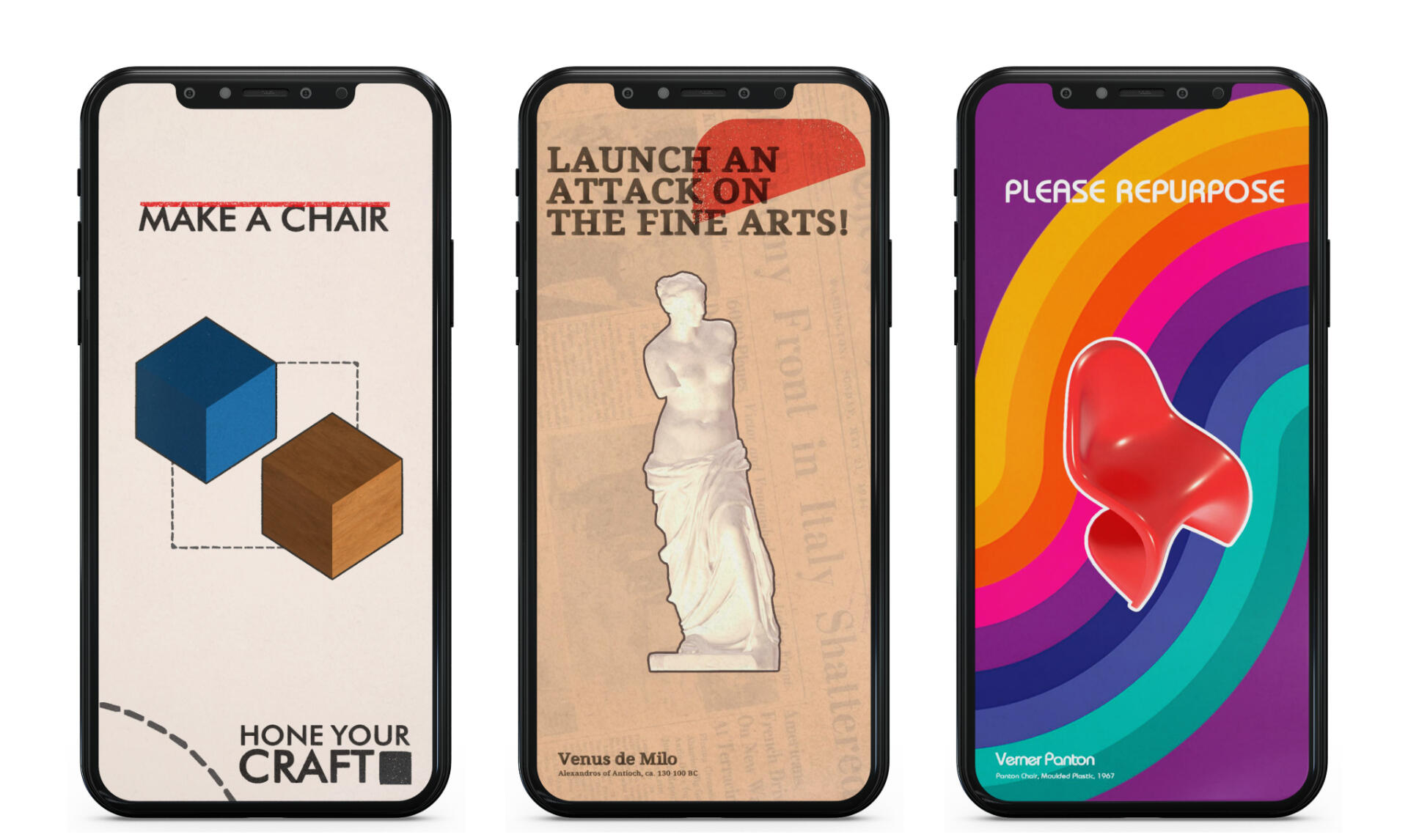 Design Slices is a concept for a single-player, mobile creative toy that combines the pleasure of slicing things with tinkering mechanics, taking you on a journey through the history of European Design.